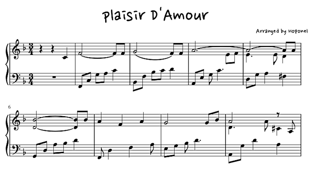 Plaisir d'amour - Sheet Music(Arranged by Hoponel)