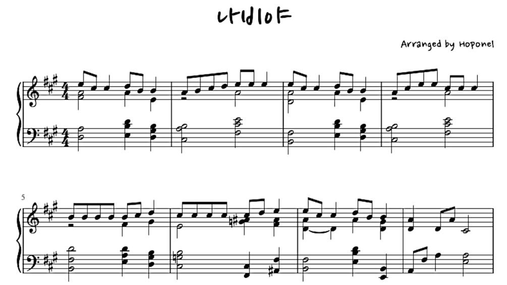 Hoponel(Heo Hyeon)retains full copyright privileges and complete ownership of this sheet music.You may use and/or redistribute this sheet music only for non-commercial purposes(It means that You may not use and/or redistribute this sheet music for commercial purposes)